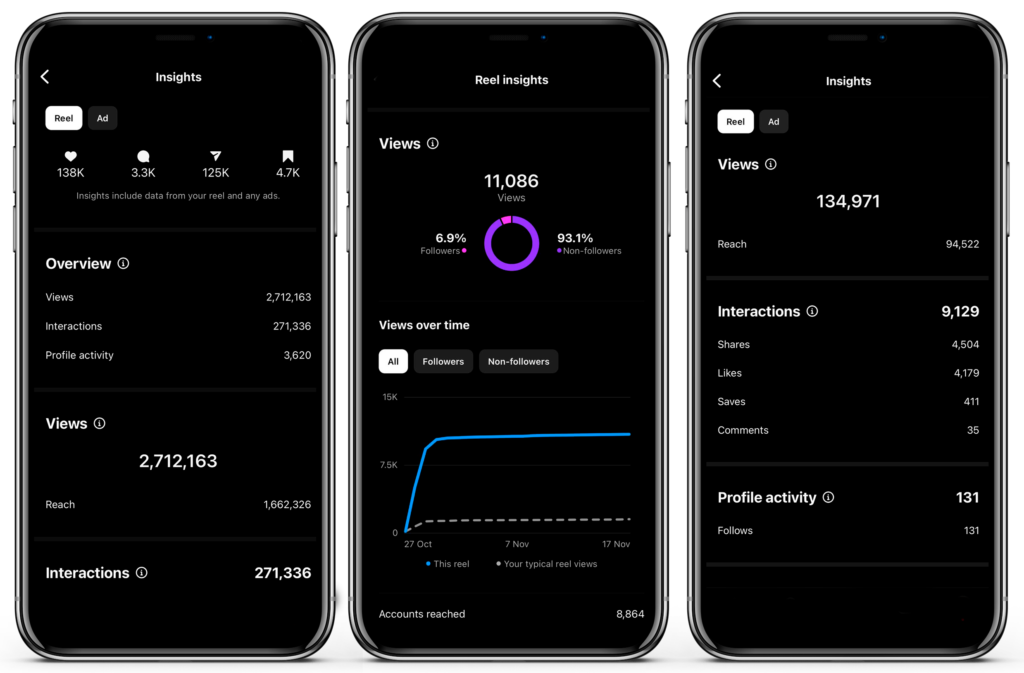 Com isso, conseguimos um alto engajamento orgânico e vários dos reels viralizaram de forma natural, sem o investimento em tráfego.